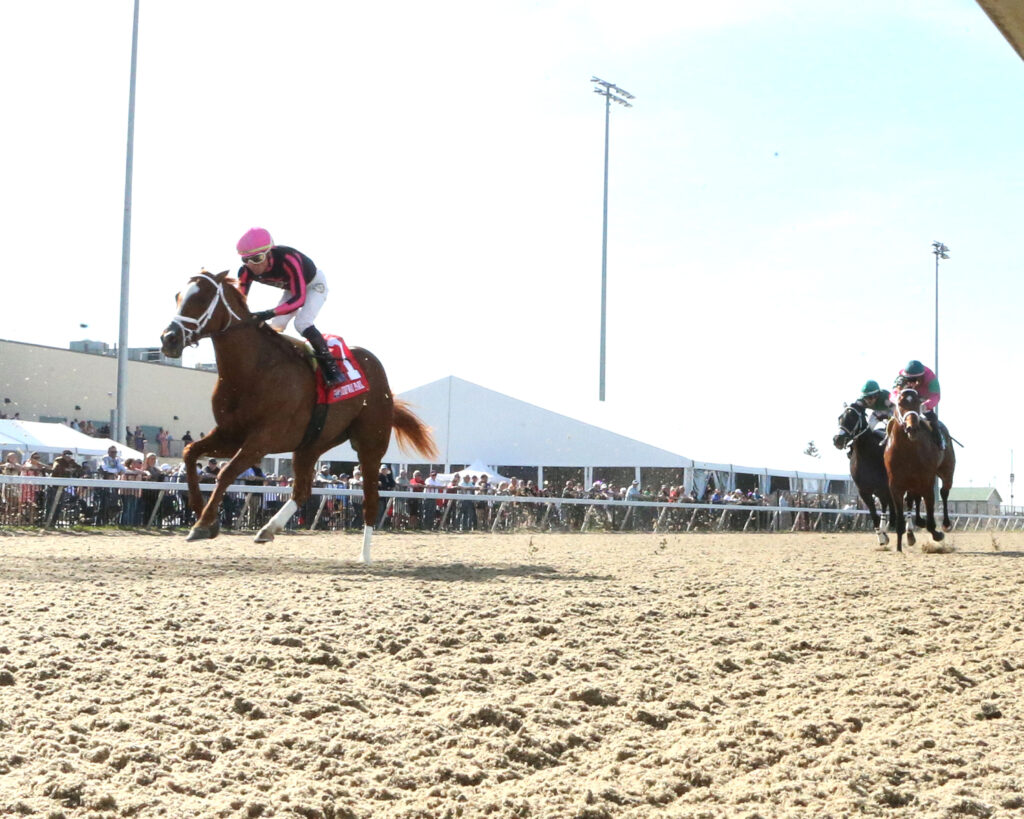 STYLISH SUE GOES GATE TO WIRE IN $250,000 LATONIA – Highlander Training Center’s Stylish Sue went straight to the front and never looked back, kicking clear in the stretch to win Saturday’s $248,000 Latonia Stakes (Listed) at Turfway Park Racing & Gaming.