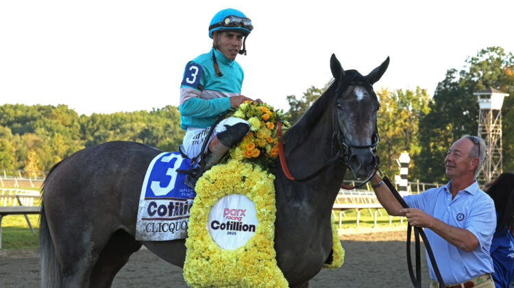 Keeneland press release (Taylor Ejdys/EQUI-PHOTO photo above of Clicquot after winning the G1 Cotillion at Parx last fall)